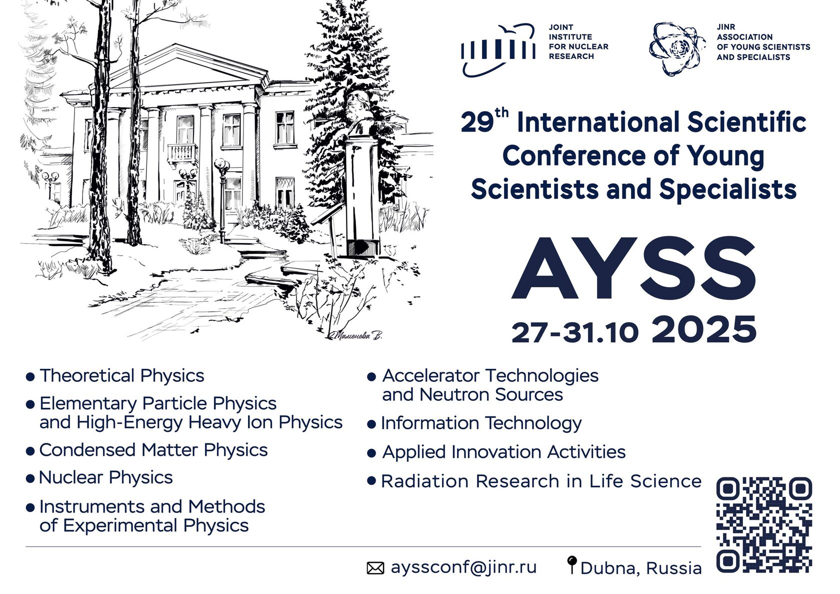 Более подробную информацию о конференции и регистрационную форму вы можете найти на сайте. Все интересующие вас вопросы можно присылать по адресу ayssconf@jinr.ru.